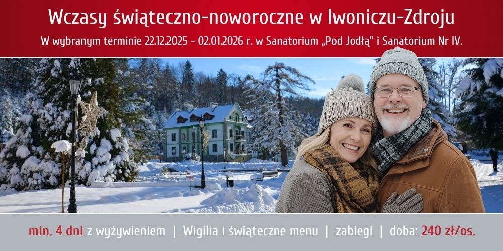 Znajdziesz tu nowoczesną bazę sanatoryjną i zabiegową, bardzo dobre warunki lokalowe, znakomite wyżywienie, kompetentny i miły personel. Największe bogactwo Iwonicza Zdroju stanowią lecznicze wody mineralne, które służą do inhalacji, kuracji pitnych i kąpielowych oraz do produkcji iwonickiej soli leczniczej i kosmetyków ze znakiem “Iwoniczanka”, których walory potwierdzone zostały szeregiem nagród i wyróżnień w ogólnopolskich i regionalnych konkursach.